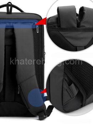 آستر دارد ,دارای قفل رمز دار ,دسته کشویی ,زیپ بیرونی ,زیپ داخلی ,محفظه اصلی با زیپ ,محفظه تبلت ,محفظه لپ تاپ ,یو اس بی ( USB ) و هندز فری ( Hands Free ) دارد |
