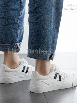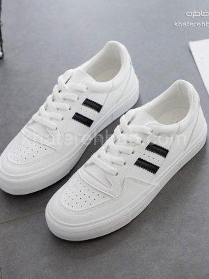 کفش اسپرت طرح آدیداس سفید دو خط نقره ای ۱۳۲۹۹