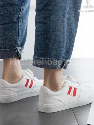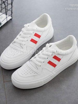 کفش اسپرت طرح آدیداس سفید دو خط قرمز 13295
